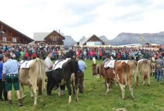 Traditioneller Alpchäsmarkt mit dem schweizweit einzigartige Kuhrennen, an welchem ausschliesslich weibliche Jockeys auf zwei Runden um die Krone vom Kuh-Grandprix streiten.
