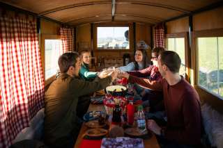 Mach es dir mit deiner Familie oder deinen Freund*innen in der speziell eingerichteten Fonduekutsche der Rössliposcht Maienfeld gemütlich und lass dich vom Zweispänner durch die Bündner Herrschaft kutschieren. Während es draussen winterlich kalt ist, geniesst ihr in der beheizten und beleuchteten Kutsche ein sämiges Bad Ragazer Käsefondue. Mit stimmungsvoller Musik und einem guten Tropfen "Maienfelder" wird die Fahrt zu einem unvergesslichen Erlebnis in der Weinregion.