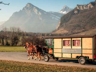Geniesse mit deiner Familie oder deinen Freunden ein feines Bad Ragazer Käsefondue in der Pferdekutsche. Der Zweispänner kutschiert euch durch die Weinregion der Bündner Herrschaft.