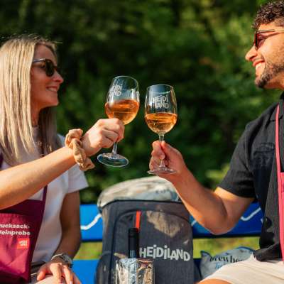 Drei ausgewählte Weine lokaler Winzer im gekühlten Rucksack