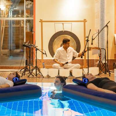 Sanfte Klangschwingungen und das schwerelose Treiben auf einer bequemen Luftmatratze lassen Körper und Geist tief entspannen. Das Gefühl des mühelosen Getragenwerdens in Verbindung mit meditativen Klängen stärkt das innere Gleichgewicht - wohltuend bei Stress, innerer Unruhe oder Erschöpfung.