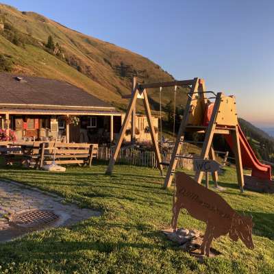 Nach der kurzen Bahnfahrt und einer bequemen halbstündigen Wanderung geniessen Sie eine Älplerkässchnitte oder ein feines z`Vieriplättli mit regionalen sowie auf der Alp produzierten Köstlichkeiten. Für die kleinen Gäste steht ein Kinderspielplatz gleich neben der Gartenbeiz.