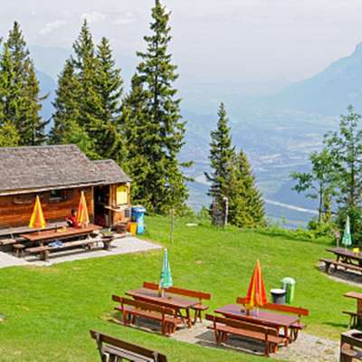 Auf halber Strecke des Heidipfad-Rundwegs lädt die idyllisch gelegene Alp Schwarzbüel zum Verweilen bei Speis und Trank ein. Sie bietet eine ruhige Lage und ist familienfreundlich.