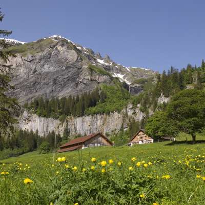 Auf der Alp Walabütz in der Gemeinde Mels leben über 180 Tiere. Zwei Hirte kümmern sich um die Tiere. Besuchende können einen beeindruckenden Ausblick auf das Bergpanorama geniessen, während die Wasserfälle der Finzenwand, des Mattbachs und des Insengrinds eine harmonische Melodie bieten.