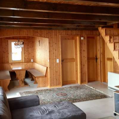 Die Wohnung im Haus Arella hat ein grosses Wohn- und Esszimmer mit einem gemütlichen Cheminée, sowie eine Küche, ein Abstellraum, ein Bad mit Dusche und WC, zwei Doppelschlafzimmer und einem Massenlager für maximal 4 Personen.
