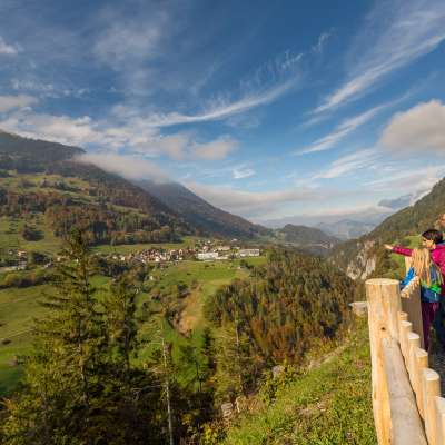 Im Taminatal zwischen Pfäfers und Vadura liegt der Infopunkt zum UNESCO-Welterbe Tektonikarena Sardona. Mit einzigartiger Aussicht auf die Glarner Hauptüberschiebung an den Wildseehörnern und dem Blick ins Taminatal und in Richtung Taminaschlucht ist er ein beliebter Verweilpunkt. Neben gemütlichem Sitz- und Liegemobiliar laden originell gestaltete Infotafeln, Blickrichter und Kletterfelsen zum Verweilen ein. Vom Aussichtspunkt hat man auch einen sehr guten Blick auf die Taminabrücke, die grösste Bogenbrücke der Schweiz. Sie verbindet am Talausgang die beiden Dörfer Pfäfers und Valens miteinander.