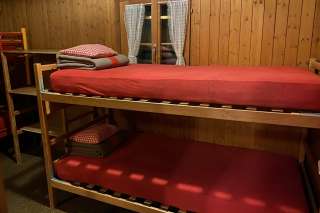 Neben den Massenschlägen gibt es 9 Doppelzimmer, ein 4-Bettzimmer, ein 6-Bettzimmer und ein 8-Bettzimmer im Berghütten-Charme.