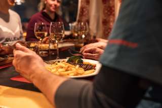 Das bediente Restaurant bietet Platz für bis zu 200 Personen und auf der sonnenreichen Terrasse finden ebenfalls gut 180 Personen Platz.
