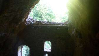 Die Burgruine Rappenstein in Untervaz, erbaut um 1250, beeindruckt mit einer starken Mauer, Fensterscharten und einem Hocheingang. Die Höhlenburg ist ganzjährig zugänglich und bietet Einblicke in historische Baukunst.