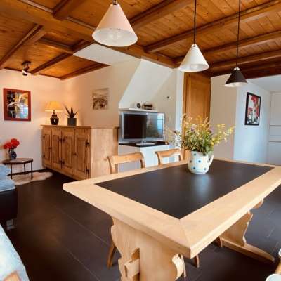 Die im Frühling 2021 neu renovierte, komfortable und liebevoll mit viel Holz eingerichtete Wohnung ist für 2-5 Personen geeignet. Das Wohnzimmer verfügt über eine grosszügige Eckbank mit Tisch und Stühlen, gemütlichem Sofa, Sessel, TV und gratis WLAN. Die erstklassige Küche ist aus hochwertigem Material und mit Geschirrspüler, grossem Kühlschrank, Backofen und alles was man braucht ausgerüstet. Die Dusche/WC ist praktisch, hell, mit Spiegelkasten, Föhn und Handtuchwärmer versehen. In der ersten Etage befindet sich das Zwei- und Dreibett-Schlafzimmer mit Kasten und Kommode. Der Sitzplatz, mit herrlicher Aussicht, ist ebenerdig vom Wohnzimmer. Es stehen ein Gartentisch mit Stühlen, Grill, eine Lounge, Liegestühle und Sonnenschirme zur Verfügung. Auf der grossen Spielwiese gibt es ein Trampolin und eine Schaukel für Freude der Kinder. Gratiseintritt ins Hallenbad. Gratis Parkplatz und Einstellraum für Bikes, Ski, Kinderwagen, etc. ist vorhanden. Die Sportbushaltestelle ist direkt vor dem Haus und zu den Bergbahnen sind es ca. 300 m.