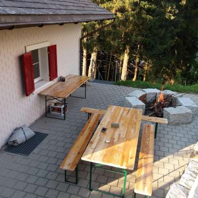 Gemütliches Holzhaus, renoviert, für Gruppen bis 42 Personen. Selbstversorger, Massenlager, moderne Küche und Nassräume. Liegt direkt an der Piste. 4 Parkplätze vor dem Haus. Ganzjährig buchbar.