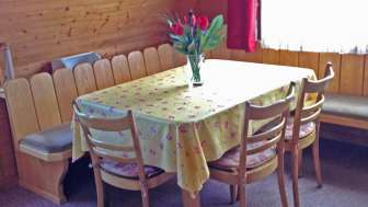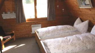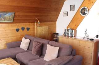 Die Ferienwohnung ist gemütlich eingerichtet und auf zwei Etagen eingeteilt. Die Wände in der ganzen Wohnung sind getäfelt. Zur Wohnung gehört eine grosse Terrasse mit Liegestuhl.
