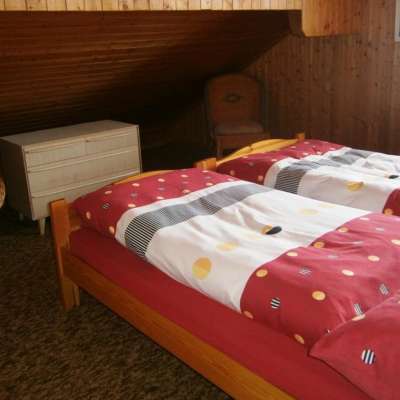 Bestehend aus Einbauküche, Essecke, Wohnraum, 1 Doppelschlafzimmer, 2 abgeschrägte Schlafnischen mit je 1 resp. 2 Betten (Total 5 Betten) und Dusche/WC.