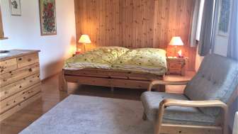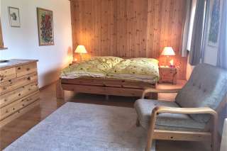 Gepflegtes, alleinstehendes Chalet mit herrlicher Aussicht. Das Chalet hat 4.5 Zimmer. Zwei Zimmer mit je zwei Einzelbetten und Schrank im Obergeschoss sowie ein grosses Zimmer mit Doppelbett, Schrank, Sitzgelegenheit und Schreibtisch im Erdgeschoss. Wohnraum mit Sitzgruppe, TV und Essecke. Zwei Nasszellen mit Duschen und eine vollständig ausgerüstete, offene Küche. Gedeckte Terrasse und Sitzplatz. Waschmaschine und Abstellraum im Erdgeschoss. Parkplätze direkt an der Bergstrasse. Das Haus steht 50 m oberhalb der Strasse. Ideal für Familien bis max. 5 Personen.