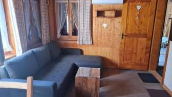 Im gemütlichen Wohn-Esszimmer in der unteren Etage stehen eine Couch, TV, ein grosser Tisch mit Eckbank. Ebenfalls hat es auf dieser Etage ein separates WC, ein Bad, welches eine Badewanne mit Duschmöglichkeit hat.