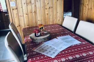 Das heimelige Ferienchalet ist gemütlich und mit viel Holz eingerichtet. Die Wände im Wohn- und Schlafzimmer sind getäfelt. Zum Chalet gehört ein Sitzplatz mit Cheminée, mit Spielwiese sowie ein Aussen-Whirlpool.