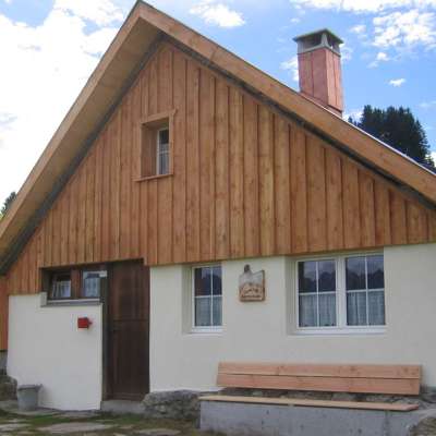 Die Chrüterhütte auf 1400 m bietet eine einfache Unterkunft mitten auf der Skipiste im Winter und auf der Alpweide im Sommer. Sie ist renoviert und zu einem günstigen Preis mietbar.