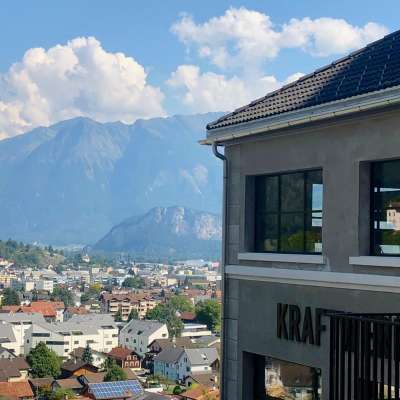 Grosszügiges Design Loft mit 115m² und 3.75m Raumhöhe für ein offenes Wohngefühl. Wohn- und Schlafbereich als ein Raum, separates Bad mit grosser Dusche sowie Balkon mit Weitblick über Mels. Naturpool, Sauna und Grillplatz zur gemeinschaftlichen Nutzung.