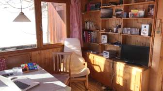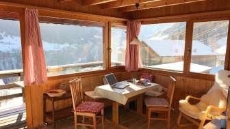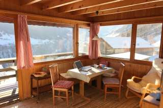 Das heimelige und helle Ferienhaus mit zwei Schlafzimmern, Wohnraum und Küche befindet sich bei Sergeuris in Valens in der Nähe eines Bauernhofes. Das Haus bietet sämtliche Einrichtungen und Ausstattungen, die ein kürzerer oder längerer Ferienaufenthalt erfordert. Ein grosser Balkon lädt zum Verweilen ein, ebenso ein Steinplatz vor dem Haus, mit Feuerstelle, mit Grill. Das Haus wird mit einem Specksteinofen (Holzheizung) geheizt. Bei Minustemperaturen muss der Ofen morgens und abends während ca. 3 Stunden ein gefeuert werden.