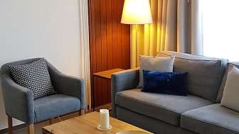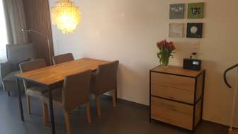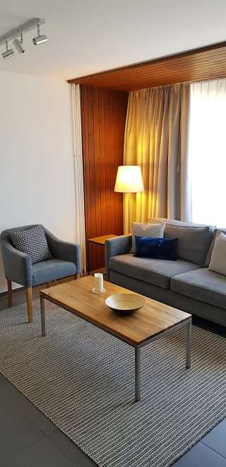 Gemütliches 2.5-Zimmer-Ferienhaus im Kurort Bad Ragaz an sonniger und ruhiger Lage, mit Cheminée im Wohnzimmer.