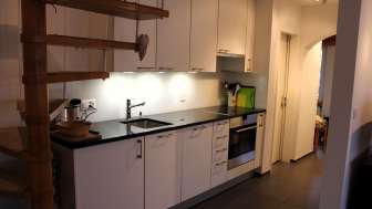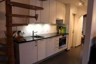 Die moderne Küche ist komplett ausgestattet und verfügt u.a. über einen Geschirrspüler. Das Badezimmer und ein separates WC mit Lavabo sind ebenfalls frisch renoviert.
