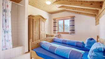 Heimeliger Ess- und Aufenthaltsraum mit Kamin. Küche mit Gastroherd, grossem Kühlschrank und Tiefkühltruhe. Die Betten sind bei Ihrer Ankunft immer frisch bezogen. Der holzgetäfelte Spielraum mit Tischtennis und Fussballkasten kann auch als Discoraum benützt werden.