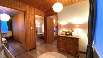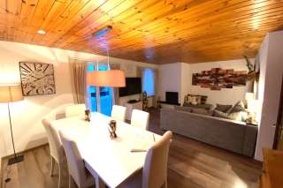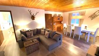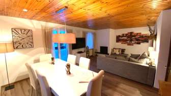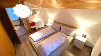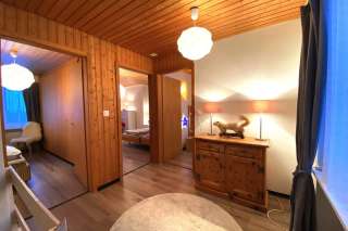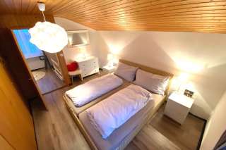 Die Ferienwohnung sehr ist gemütlich und komfortabel eingerichtet. Die Wohn- und Schlafräume verfügen über einen Holzboden. Der grosse Balkon bietet einen wunderschönen Panoramablick in die Berge.