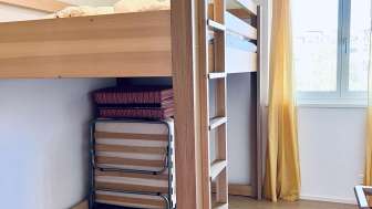 Die Ferienwohnung ist sehr hell, modern und komfortabel eingerichtet. Die Wohn- und Schlafräume verfügen über einen schönen Holzboden. Zur Wohnung gehören 2 Sitzplätze.