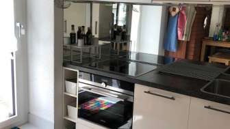 Die vollausgestattete Küche verfügt über Keramikkochfeld, Backofen, grossen Kühlschrank, Geschirrspülmaschine, Kaffeemaschinen, Wasserkocher, Toaster, Fondue- Raclette Set.