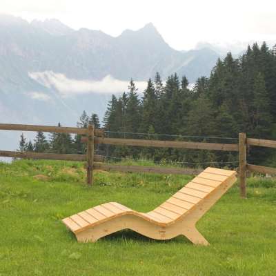Die Geissenweid auf Öhi’s Alp bietet einen Balancierpfad für Kinder und Holzliegen für Eltern. Entlang des Weges von der Bergstation sind geschnitzte Holzfiguren einheimischer Tiere zu sehen. Mittwochnachmittags findet der Märlizauber statt.