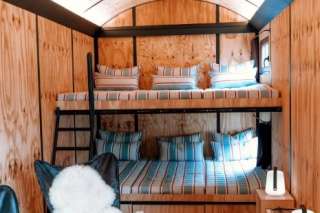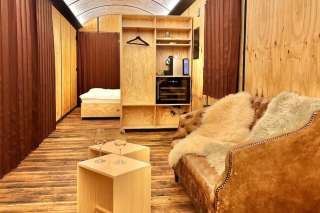 Gleis 6 am Walensee bietet ein einzigartiges Erlebnis in einem umgebauten SBB Cargo-Bahnwagen. Bis zu acht Personen können hier eine besondere Übernachtung in Murg geniessen, mit Blick auf den Walensee.