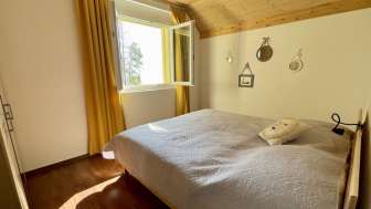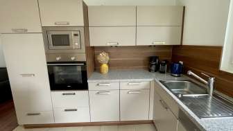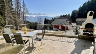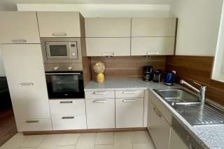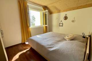 Die Wohnung ist sehr modern und komfortabel eingerichtet. Wohn- und Schlafräume verfügen über einen schönen Holzboden. Bilder und Schmuck verzieren Wände und Regale. Zum Haus gehört zudem eine grosse Terrasse, ca. 25m2 mit Kamin-Grill.