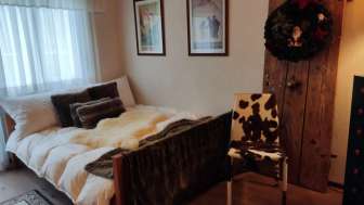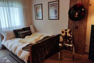 Die grosszügige Wohnung im zweiten Stock ist zweckmässig eingerichtet. Schöne Landschaftsbilder zieren die Wände. Die Wohnung verfügt über zwei Balkone mit Morgen- und Abendsonne.