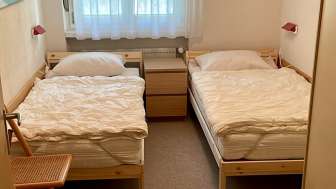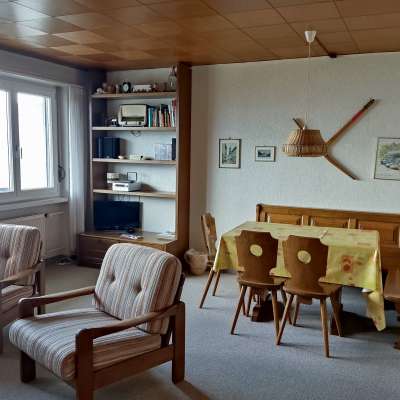 Die grosszügige Wohnung im obersten Stock ist zweckmässig eingerichtet. Schöne Landschaftsbilder zieren die Wände. Die Wohnung verfügt über zwei Balkone mit Morgen- und Abendsonne.