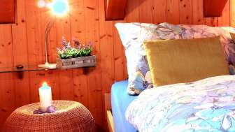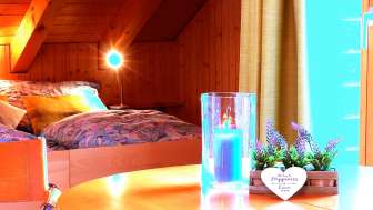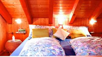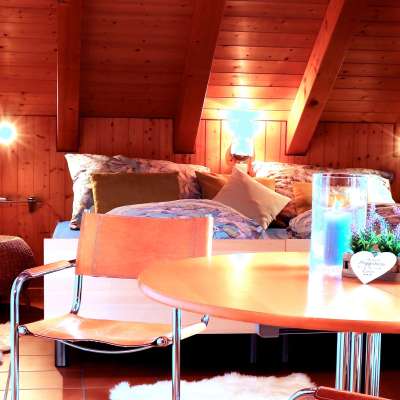 Beide Studios sind einfach eingerichtet und verfügen über einen Wohn-/Schlafbereich mit Doppelbett, Sofa und TV. Die kleine Küchenzeile ist mit allem ausgestattet was man braucht. Sie bietet Herd, Backofen, Kühlschrank und Kaffeemaschine. Die Dachschrägen mit Holzbalken machen den Aufenthalt in den Studios sehr gemütlich. WIFI vorhanden.
