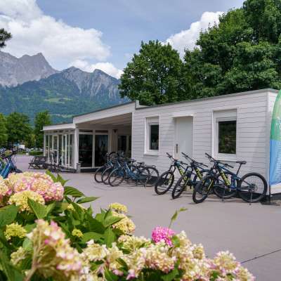 Die E-Bike Station Bad Ragaz mit Bikeverleih bietet eine moderne Mietflotte an Trek E-Bikes und E-Scootern. Sie ist ideal für Tipps zu Touren in der Region Heidiland, Buchungen von Guides und Fahrtechnikkursen. Betrieb von Mai bis Oktober.