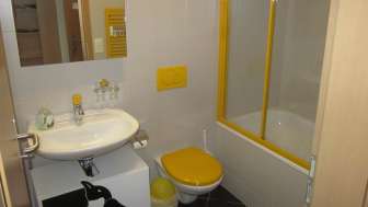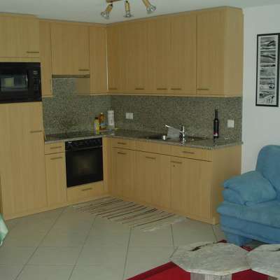 Das Jolyhaus ist zentral und direkt beim Schwammkopf Skilift gelegen. Die 2.5-Zimmer-Wohnung befindet sich im 2. Obergeschoss und ist mit dem Lift bequem erreichbar. Das Schlafzimmer ist unterteilt in ein Kinderabteil mit Kajüttenbett und dem Elternabteil mit Doppelbett. Das Badezimmer ist mit einer Bade-Duschwanne ausgestattet. Im Erdgeschoss befindet sich der gemeinsame Skiraum.
