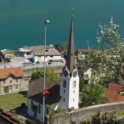 Die Kirche in Mühlehorn, ein charmantes und geschichtsträchtiges Gebäude, erhebt sich majestätisch am Ufer des Walensees.