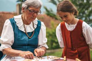 Nur noch wenige Menschen beherrschen diese uralte Handwerskunst des Klöppelns. Beim Zuschauen merkt man erst, wie konzentriert diese Frauen sein müssen, um diese feinen Fäden so zu klöppeln, dass ein gewisses Muster dabei entstehen kann. Unzählige Arbeitsstunden stecken in einer kleinen Spitzendecke. Lassen Sie sich selbst beeindrucken.