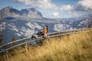 Rasante Fahrt auf der Rodelbahn FLOOMZER oder Talfahrt mit der Sesselbahn Chrüz