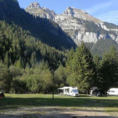 Der Lagerplatz Hüttenwiese im Taminatal bietet auf 1'000 m ü.M. ein naturnahes Erlebnis. Umgeben von Wäldern und Bergen ist er ein geschützter Lebensraum für bedrohte Arten. Nur für leichte Camper bis 2,5 t.