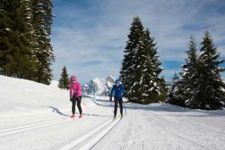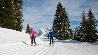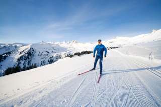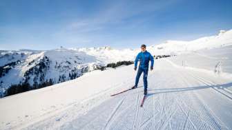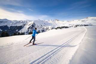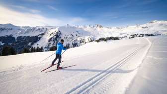 Langlaufen am Flumserberg: 20 km Loipen für jedes Tempo – sportlich oder entspannt durch die verschneite Winterlandschaft.