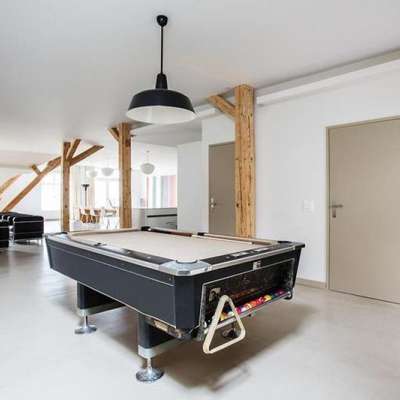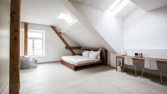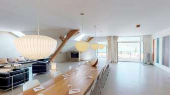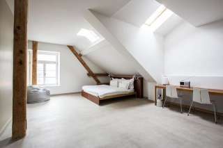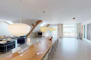 Die im Dachgeschoss untergebrachte Loftwohnung mit einer Fläche von 330m2 bietet das ultimative Loftfeeling. Die Loft verfügt über vier getrennte Schlafzimmer (max. 8 Personen), zwei Badezimmer, eine riesige und voll ausgestattete Küche, einen Balkon sowie einen sehr grosszügigen Wohnbereich mit einem sechs Meter langen Massivholztisch aus Kastanie. Die stilvolle Einrichtung und der individuelle Charme überzeugen alle Loft-Liebhaber.