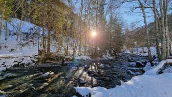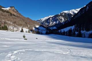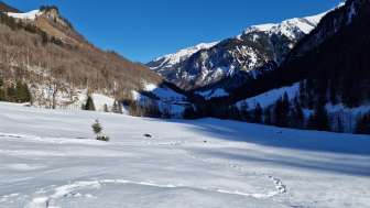 Begleitet von einem ortskundigen und ausgebildeten Guide der Bergträume GmbH ziehst du deine Spuren durch tief verschneite Wälder und offene Alpflächen. Unterwegs erfährst du Spannendes über die Natur, die Tierwelt und die Geschichte dieses ehemaligen Walsertals. Mit etwas Glück zeigen sich Hirsche, Füchse oder Wasseramseln. Die Route führt vorbei an rauschenden Bergbächen, alten Bergbauernhöfen und bietet eindrucksvolle Ausblicke auf den Foostock – Teil des UNESCO-Weltnaturerbes Tektonikarena Sardona