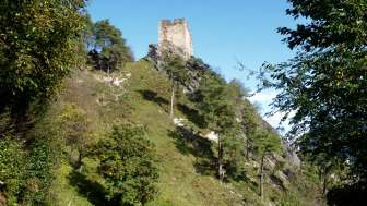 Die Burgruine Neuenburg in Untervaz beeindruckt mit ihrem monumentalen Baukörper und fast palastartigen Erscheinungsbild. Die Ruine aus dem 13. Jahrhundert bietet eine faszinierende Mischung aus Kalk- und Tuffsteinarchitektur.