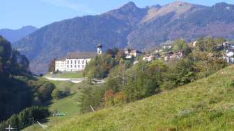 Imposant präsentieren sich in Pfäfers die barocke Klosterkirche und das Alte Bad Pfäfers in der Taminaschlucht.