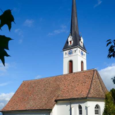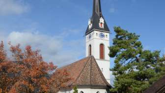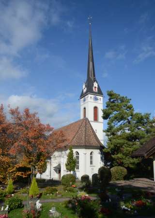 Der Blick von der Strasse über die Treppe, den Giebel des Kirchendaches zur Turmspitze: Spürbare Verbundenheit von Irdischem mit Himmlischem. 1440 wird die Kapelle zur Pfarrkirche. Der Chor wird 1486 mit einem spätgotischen Spitzgewölbe vergrössert, wird später auch zur Grabstätte der von Salis-Marschlins. Interessant im Innern: Darstellung der Passion Jesu aus dem 15. Jh.