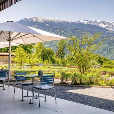 Das Pinot ergänzt das Ensemble der Klinik Gut in Fläsch als Insel der Kulinarik, der Genusses bei passendem Ambiente und einzigartiger Terrasse im schönen Garten.