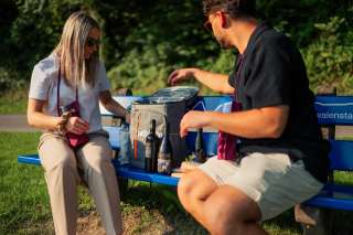 Drei ausgewählte Weine lokaler Winzer im gekühlten Rucksack