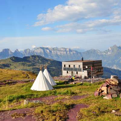 Wanderer, Naturbegeisterte und Skitouren-Läufer schätzen die einzigartige Lage der Spitzmeilenhütte: hoch über dem Schilstal mit atemberaubendem Blick zu den Churfirsten und auf den Spitzmeilen.